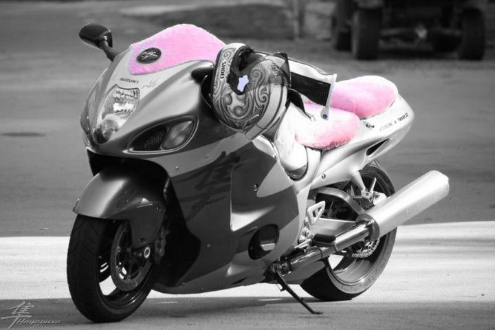 The pink is tastefully done but don't let the temptation of glitter and unicorns get to you. I would definitely ride a pink busa. Hot pink and flat black would be sick.