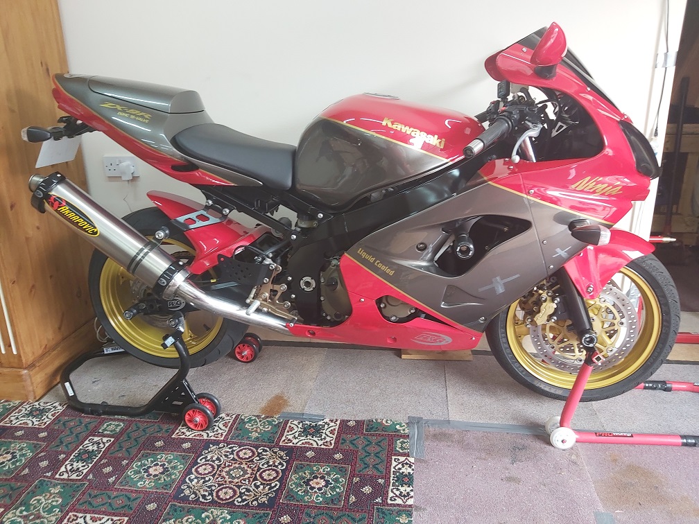 Ok i know it's not a Busa or even a Suzuki. But i thought i would add it to the showcase as it's the bike i will never sell on. When i first bought it, it was silver and looking a bit dated and tired. So i did a full rebuild on it in 2016 and changed the colour to Blue and painted the frame / swingingarm and some other parts black. In 2018 I got hold of another set of panels and painted them the classic 1984 GPz900r colours which are now the panels that will stay on the bike. I found a mint Akrapovic end can for a steal. Also got Harris rearset and Harris exhaust hanger as well. It has a Yamaha FZ8 tail tidy with a custom undertray. I also have the reg number X9OOR on it as it's a zx9r. I stopped using the bike 2 years ago and just leave it parked up on its stands in the garage. I do start it up every couple of months or so. Today I did cleaned the last 12 months of dust of it. I do have a cover for it, but i like seeing the bike every time i go into the garage.