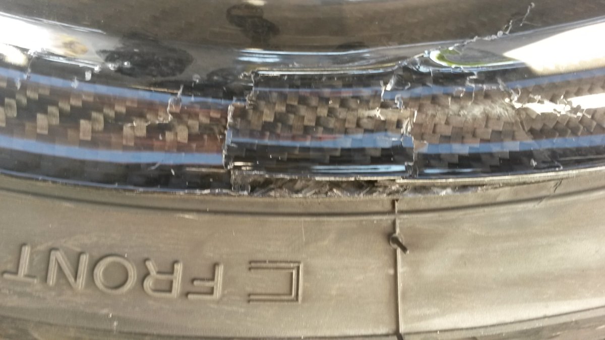 Hi, I have been using BST Carbon wheels since 2005 on a succession of Suzuki Sports bikes (GSXR 1000's) without a problem, however last weekend on my Hayabusa I hit a shallow (30mm deep) pothole on a roundabout at around 30 mph. I never gave it much thought tbh but when I got home after my ride out I discovered that there had been some delaminating of the carbon fibre although the tyre hadn't deflated. However taking the tire off to replace the wheel revealed a crack on the rim and by this time the tire had deflated fully. I'm not interested in claiming or anything but I am concerned obviously about the safety aspect of these wheels as I feel an aluminium wheel wouldn't have had such damage from a relatively minor impact. I can supply photos of the wheel or I am prepared to ship it to you (at your cost obviously) for inspection. I look forward to hearing from you in due course.