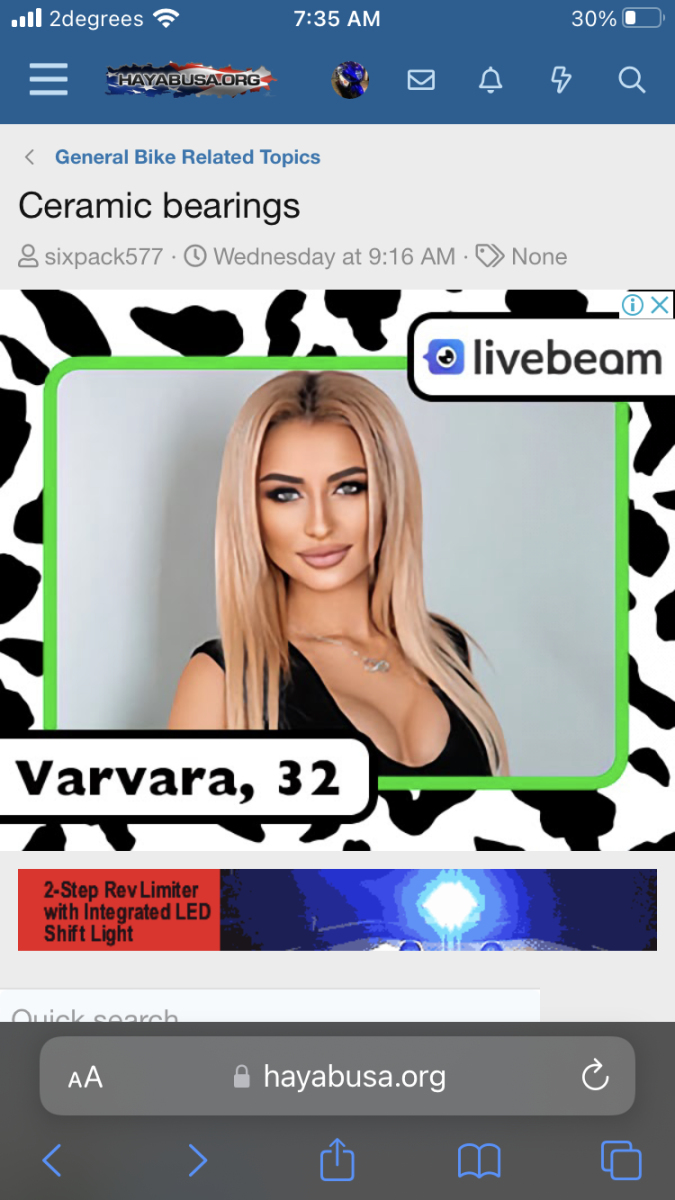 for me, who moves his busa (attention: irony) very slowly around the narrow bends/corners/curves, this discussion about ceramic bearings is a pure, sheere waste of time.