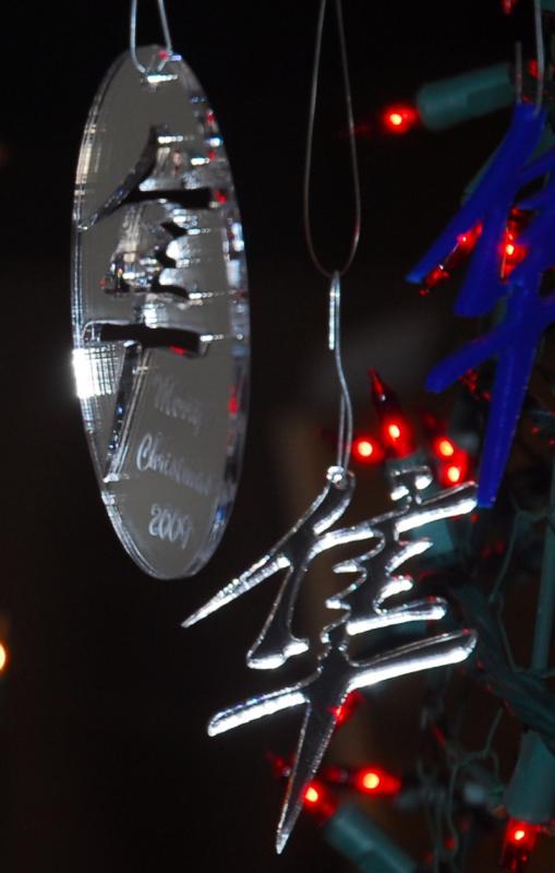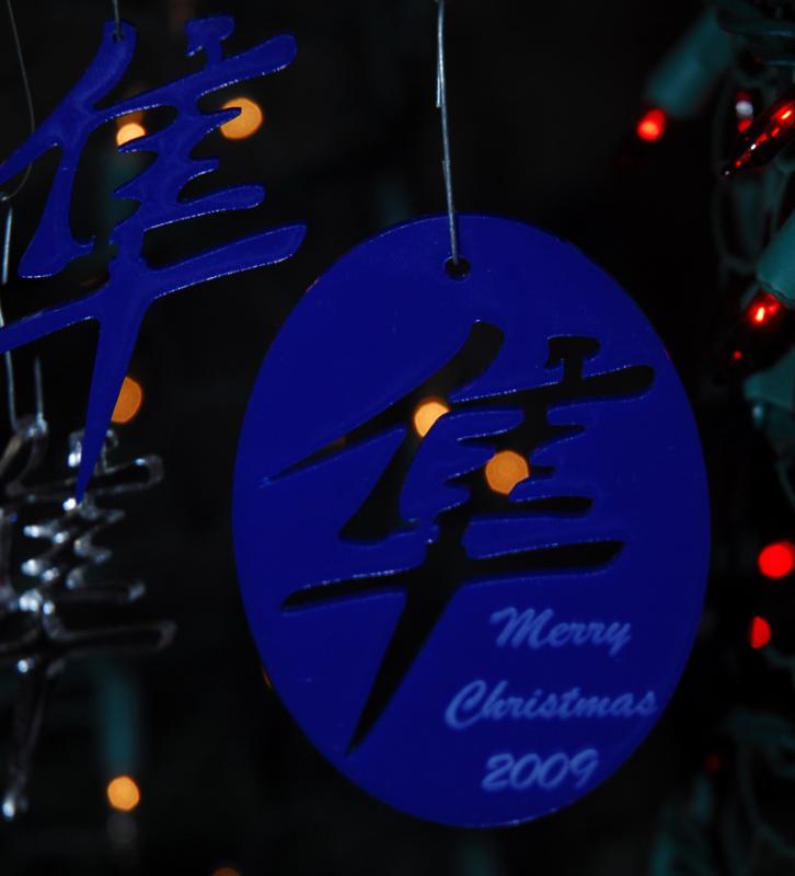 We wanted to do something a little different this year for Christmas so we had a custom Kanji Christmas Ornament made. With the artwork that we finalized on you actually get two ornaments out of one.