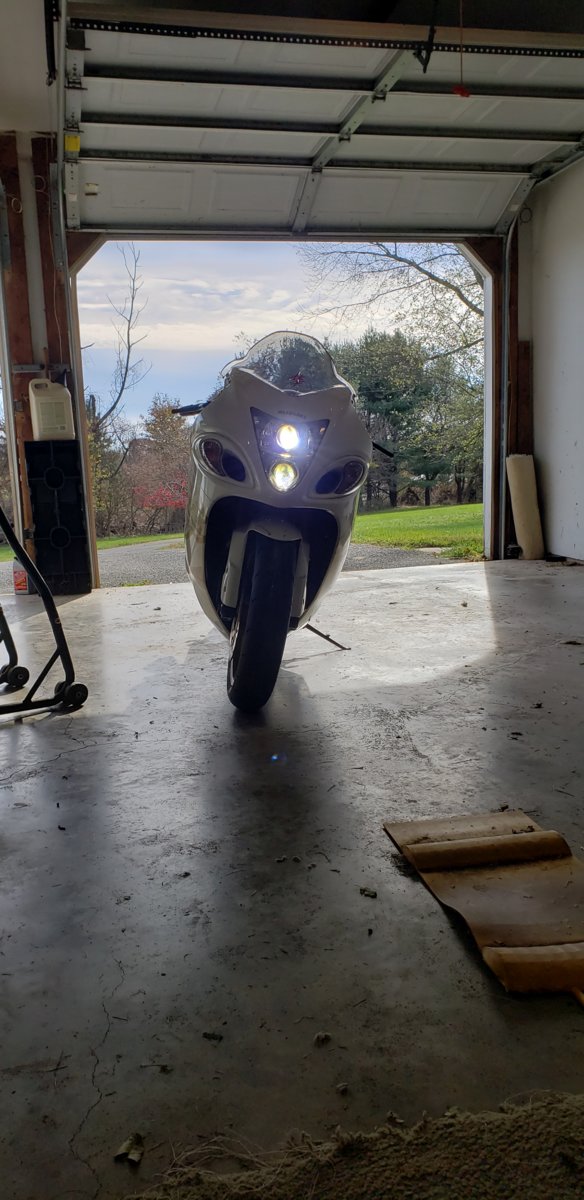 Both ballast are zip tied above the right side intake tube. The little capacitors (or whatever they are) are zip tied in the middle upper support I believe. The wires are ran on left side on inside of frame rail to battery. I don't think I had to extend the wires for high beam. I tied both solenoids together inside the headlight and just have a connector coming out, just don't remember if it was top or bottom projector