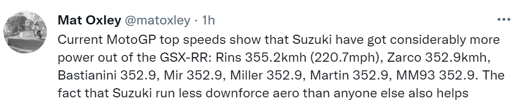 Suzuki's pre-season speed was no fluke it seems. Early I grant you but when was the last time a Suzuki was the top speed in a MotoGP race weekend?