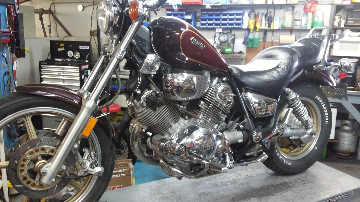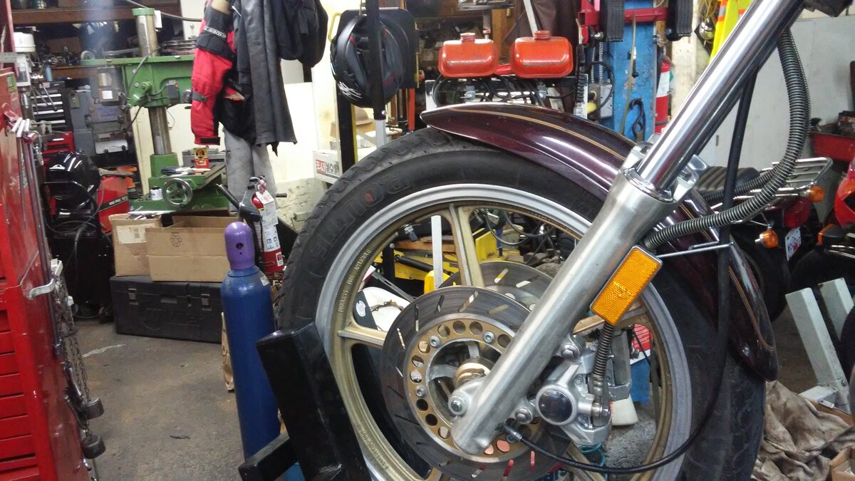 The other brought in her old classic. 1986 XV750. I used these,and Zook VX's,Honda Shadow's,Ninja's and others when I was building and selling custom choppers,bobbers,streetfighters,etc for folks that wanted something cool,one -of-a-kind but reasonably priced. 2-3K. Anyway she needed her brakes rebuilt and after finding out that her and her buddy have a business that has warehouse space and they might be nice enuff to maybe share some with us...I offered to be their new best friends. I'm hoping there will be a lunch date soon and some chit chat. (maybe talk business too...