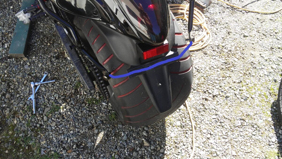 I was going to re-install the OEM plate/tag/fender which is supposed to hold the rear mount bracket on a stock Busa. The tail is to low, and even with my rear air-ride suspension adjusted to max height,there was no room to fit the fender. Thanks again thou @Big E for mailing that to me. It was supposed to make that 4th attachment point a breeze. Nope.