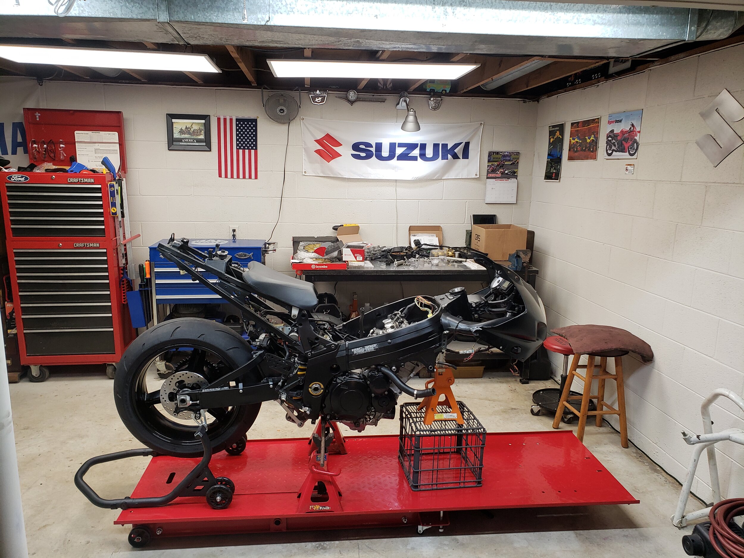 I have done it this way for years with a rear stand/center stand and a mechanical bottle jack I have.