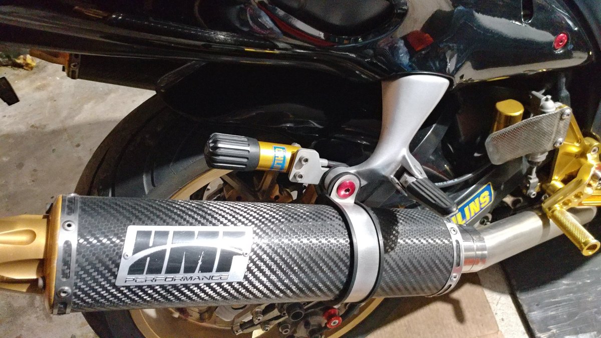 You can see the adjuster there above the Yoshi. It is screwed to the foot peg mount. It's accessible even though this photo makes it look tight. It's crazy but people just can't resist playing with it. "What's this?" and then they turn it! When you get it set where you like it back it all the way down and count the rotations so you can easily check it periodically.